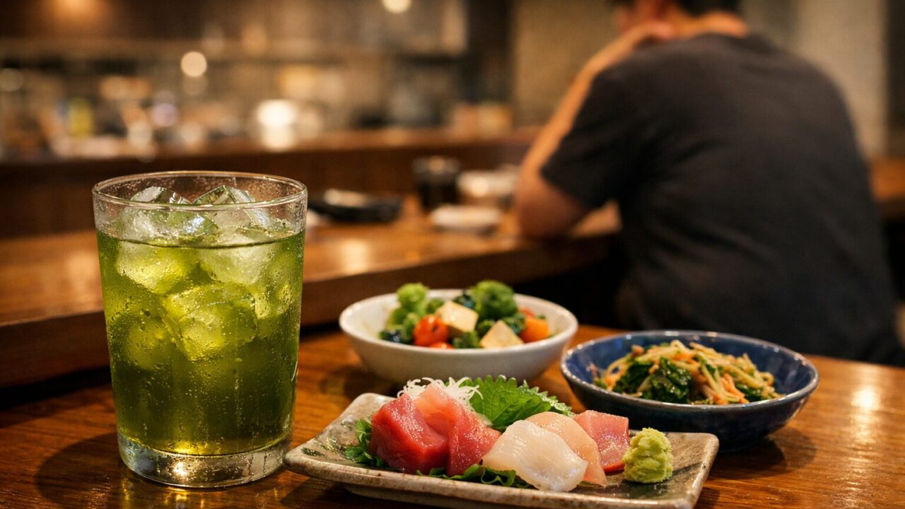 緑茶ハイに合わせるなら、刺身、冷奴、枝豆、焼き鳥(塩)といった低糖質・高タンパクなおつまみを選びましょう。緑茶に含まれるカテキンやタンニンには脂肪の吸収を穏やかにする効果も期待できますが、それも限度があります。お酒を「食事のメイン」にするのではなく、食事を引き立てる「名脇役」として楽しむ意識が、太らない晩酌の鉄則です。