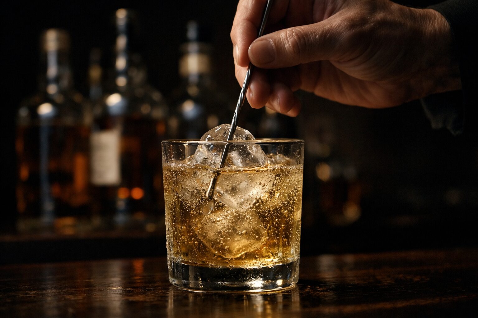 次に重要なのが「炭酸水」と「温度」です。ウイスキー、グラス、炭酸水のすべてを冷蔵庫でしっかりと冷やしておくことが鉄則です。温度差があると炭酸が抜けやすくなるためです。作り方の手順としては、まずグラスに氷を一杯に入れ、マドラーで回してグラス自体を冷やします(溶けた水は捨てます)。ウイスキーを注ぎ、全体になじませるように混ぜてから、炭酸水を氷に当てないように静かに注ぎます。最後にマドラーで縦に一回だけステアすれば完成です。混ぜすぎは厳禁です。